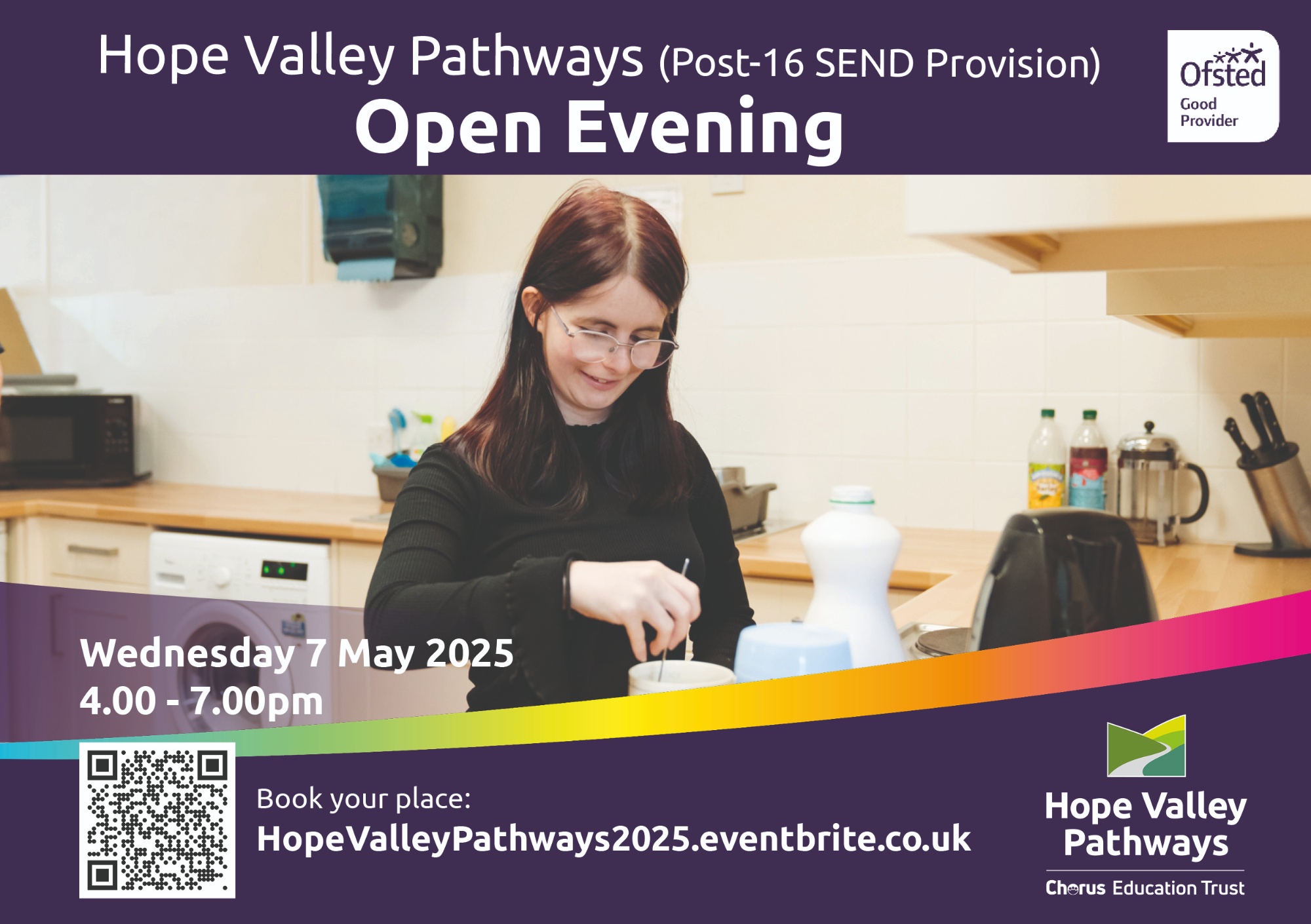 Hope Valley Pathways is a specialist post-16 provision for young people with SEND, preparing them for life and work.