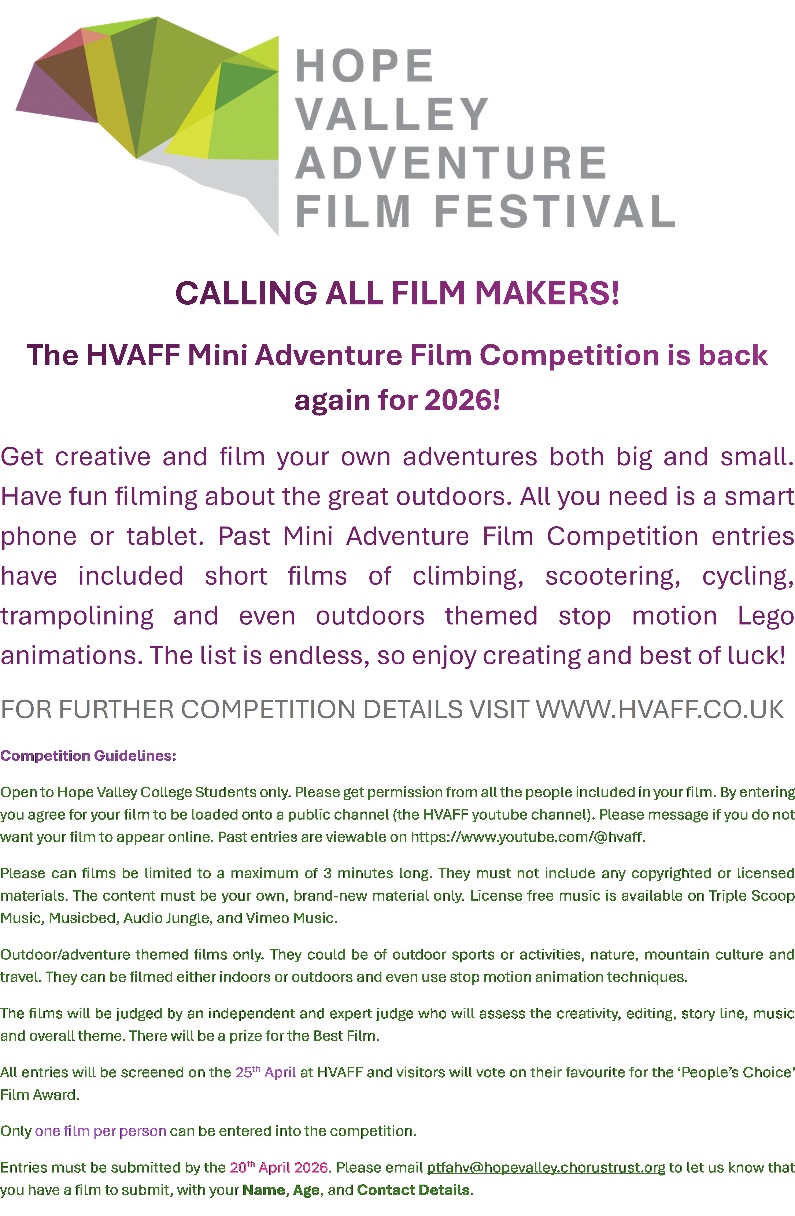 Hope Valley Adventure Film Festival – Saturday 25 April