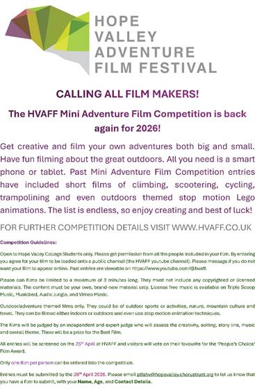 Hope Valley Adventure Film Festival – HVAFF – Saturday 25 April, 2026
