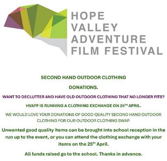 As well as a fabulous selection of short films, there are also organised bike rides, caving, orienteering, indoor climbing, a tent challenge, arts and crafts, a clothing repair shop and outdoor clothing exchange. Food will be available from 11am onwards, with lots to choose from. In the evening, we welcome 2 speakers from the outdoor adventure world. There is also the option to book an evening meal. Raffle tickets will be available throughout the day with some fabulous prizes to be won. And don’t forget that any entries for the student short film competition should be sent by Monday 20 April. For more information about the day, have a look at the website: HVAFF – Hope Valley Adventure Film Festival